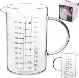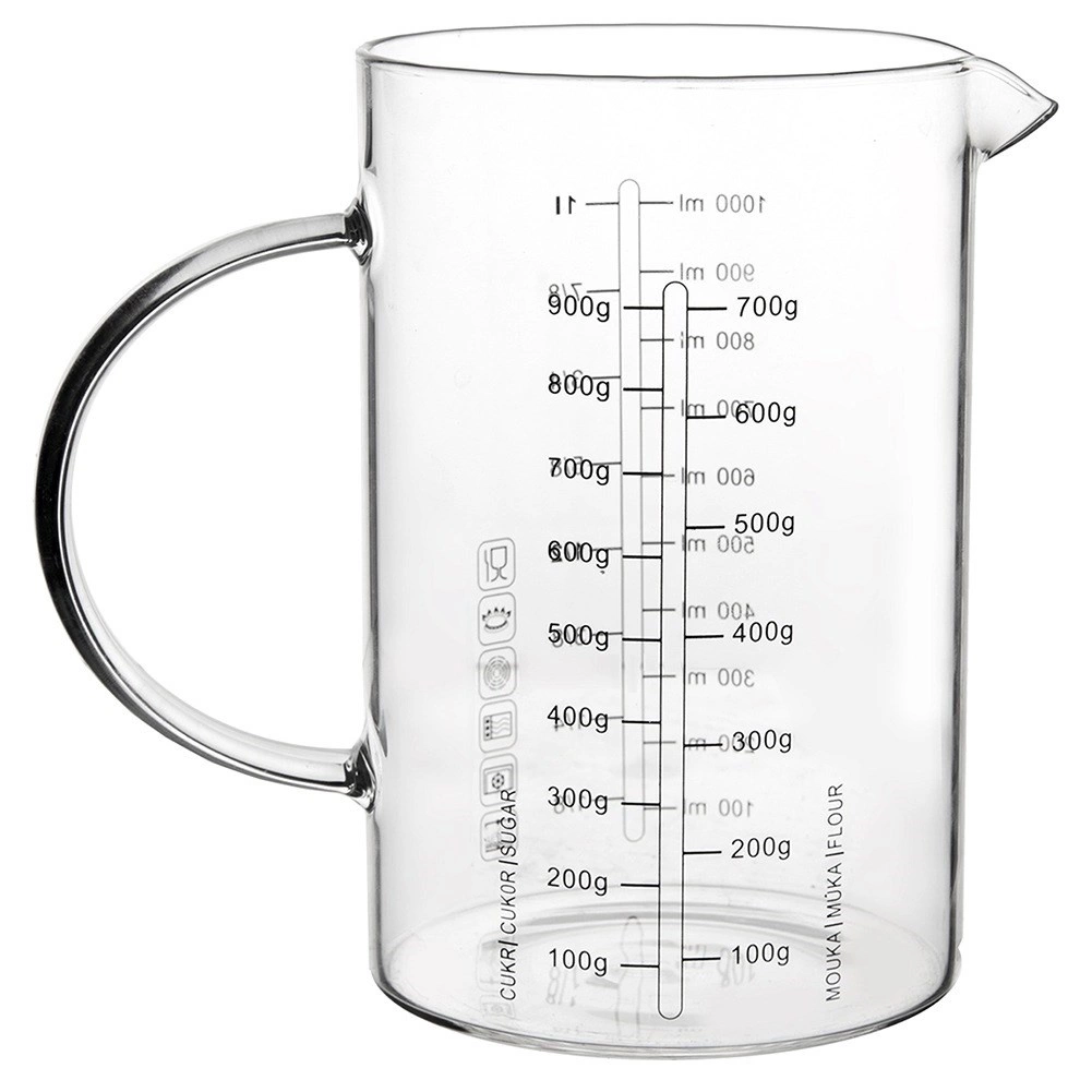 Sklenená odmerka v podobe džbánika je nepostrádateľným pomocníkom do každej kuchyne. Vďaka ergonomickému uchu a praktickému zobáčiku umožňuje presné a čisté prelievanie aj sypanie surovín. Vyrobená z odolného borosilikátového skla, zvláda široký rozsah teplôt a hodí sa na každodenné varenie aj pečenie.