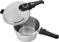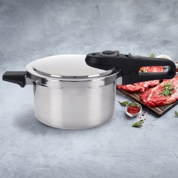 Konštrukcia z nehrdzavejúcej ocele so sendvičovým dnom skvelo akumuluje a rovnomerne rozvádza teplo. Hrniec je kompatibilný s plynovými, elektrickými, sklokeramickými, halogénovými aj indukčnými varnými doskami. Údržba je jednoduchá – nádobu možno umývať v umývačke (veko so systémom regulácie tlaku je vhodné umývať ručne).