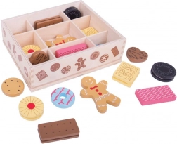 Predstavujeme drevenú krabičku s hračkami sušienok, ktorá obsahuje sortiment obľúbených sušienok, vrátane perníčkov a ďalších lahôdok. Táto sada umožňuje malým deťom rozvíjať svoju kreativitu prostredníctvom hry inšpirovanej pečením.