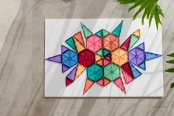 Obsahuje trojuholníky a šesťuholníky na tvorbu 2D motívov aj 3D objektov. Ideálne na rozvoj symetrie, priestorových vzťahov a vzorcov.