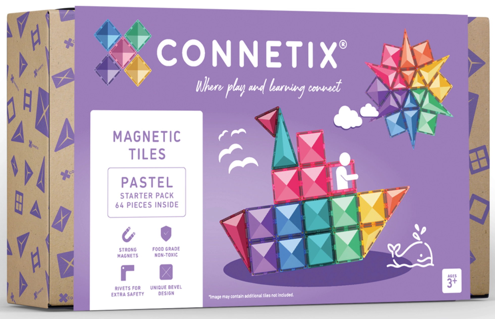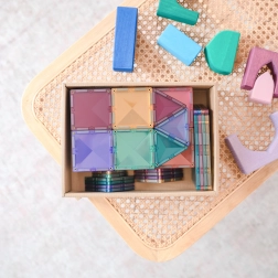 Pastelový štartovací balíček CONNETIX prináša 64 priehľadných dlaždíc v jemných farbách, s ktorými deti postavia veže, hrady, mosty aj rakety. Vďaka magnetom po okrajoch sa dieliky spájajú z každej strany, konštrukcie sú pevné a príjemné „kliknutie“ motivuje k ďalšiemu skúmaniu. Set je skvelý na rozvoj STEAM zručností – od magnetizmu a rovnováhy po symetriu a 2D/3D geometriu.