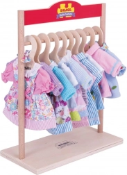 Šatník pre bábiky Bigjigs je skvelým doplnkom pre každú malú módnu návrhárku. Tento drevený stojan je vyrobený z kvalitných a zodpovedne získaných materiálov a vaša detská zbierka bábikového oblečenia tak bude vždy usporiadaná a chránená pred poškodením.
