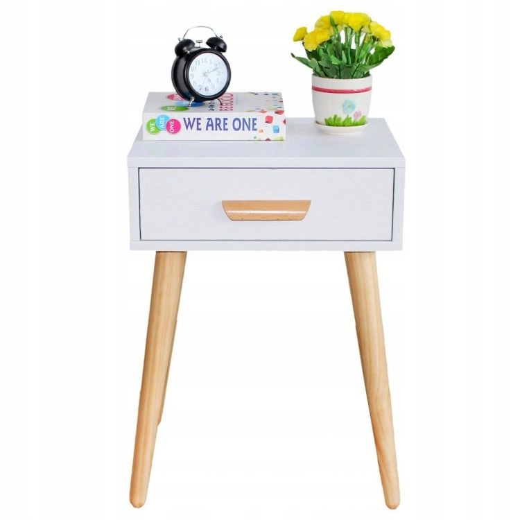 Štýlová súprava dvoch nočných stolíkov v bielej farbe od ModernHome skvele zapadne do spálne aj obývačky. Ponúka kompaktné rozmery, stabilnú konštrukciu na borovicových nohách a praktickú zásuvku na drobnosti. Odolné laminované dosky sa ľahko udržiavajú a zvládnu každodenné používanie.