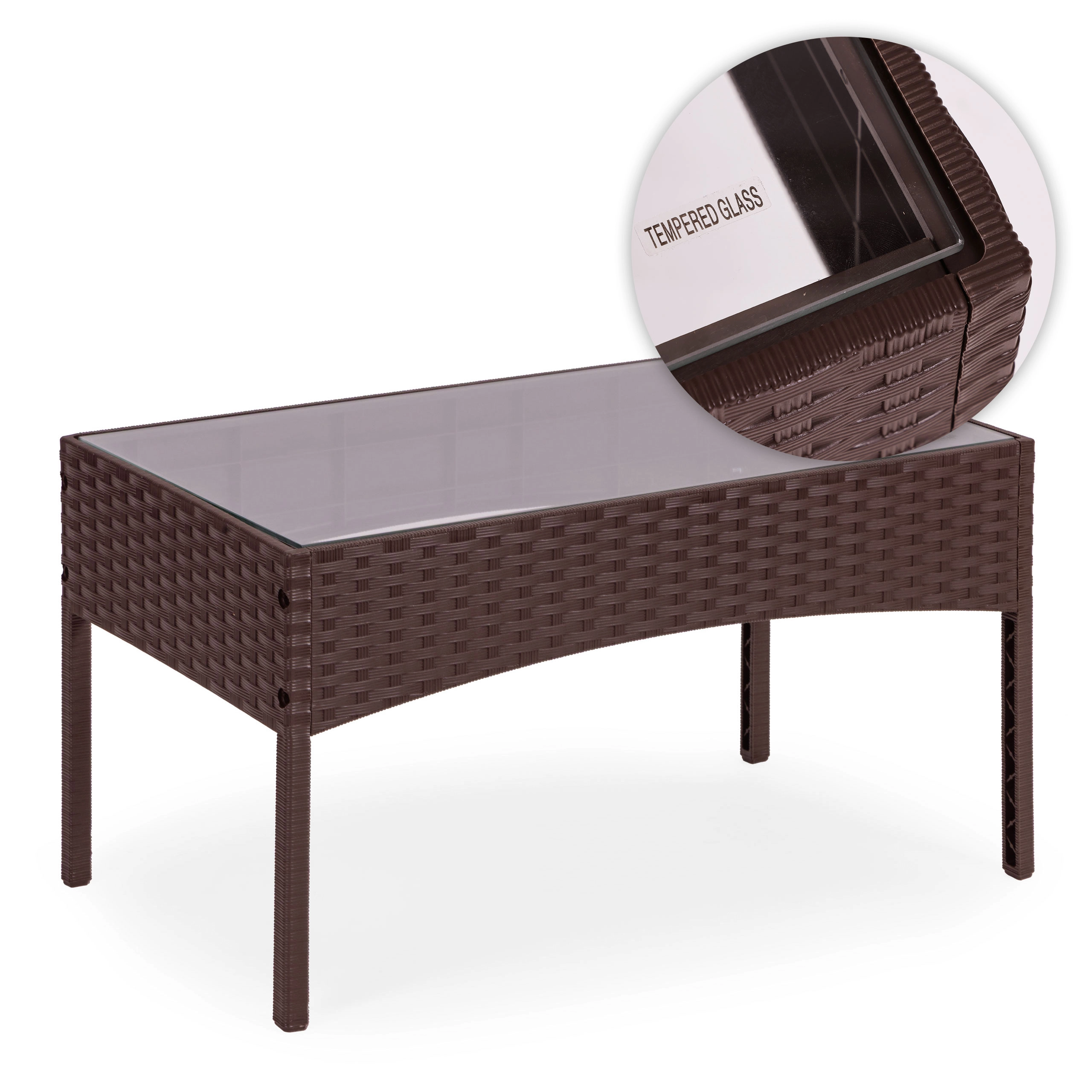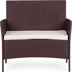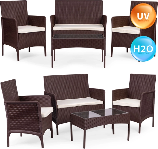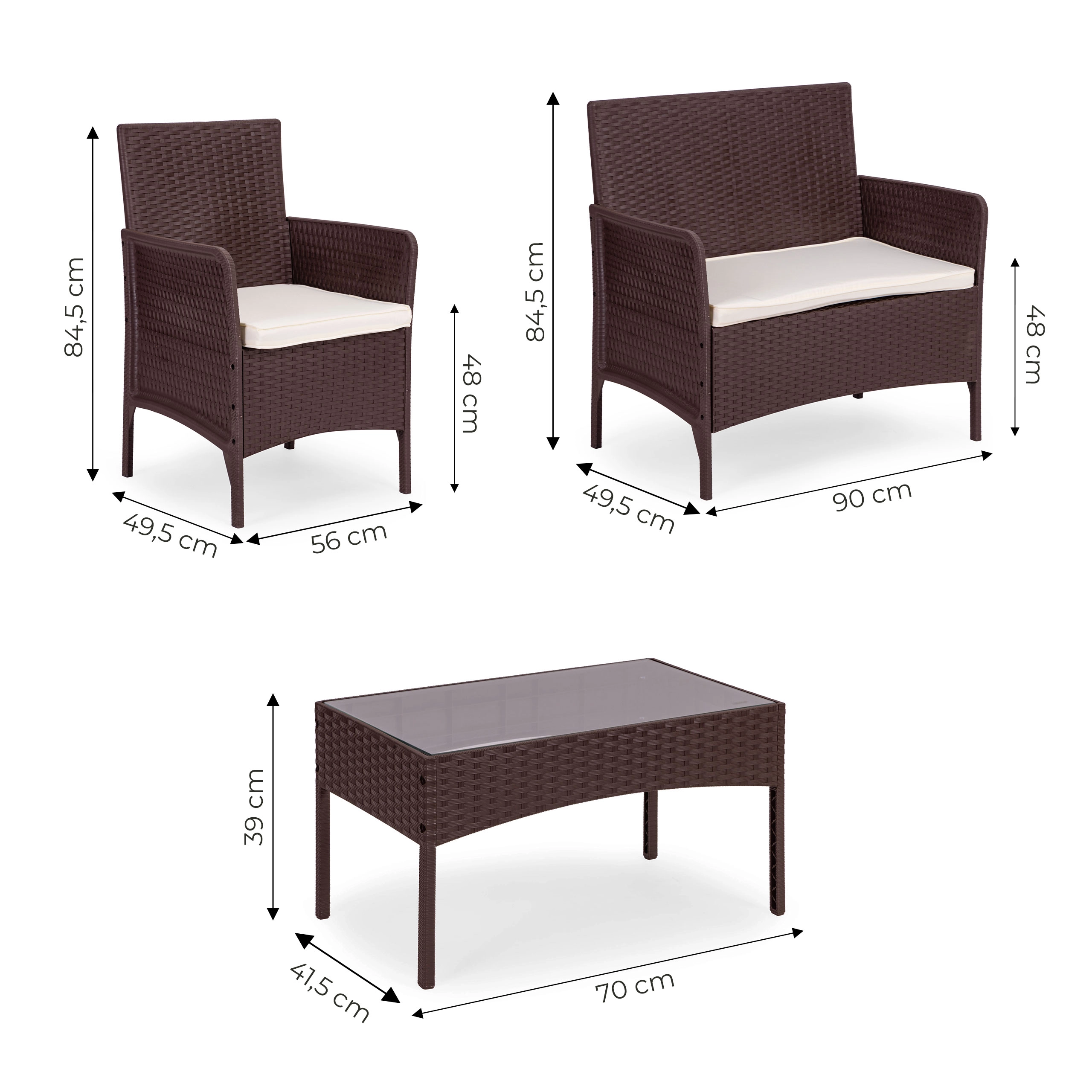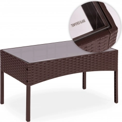 Vytvorte si príjemné miesto na posedenie a relax. Táto 4-dielna záhradná súprava v hnedej farbe kombinuje vzhľad technoratanu s praktickými výhodami odolného plastu. Je ideálna na každodenné používanie v záhrade aj na terase a vďaka tvrdenému sklu na stolíku získate stabilnú a bezpečnú odkladaciu plochu na kávu i občerstvenie.