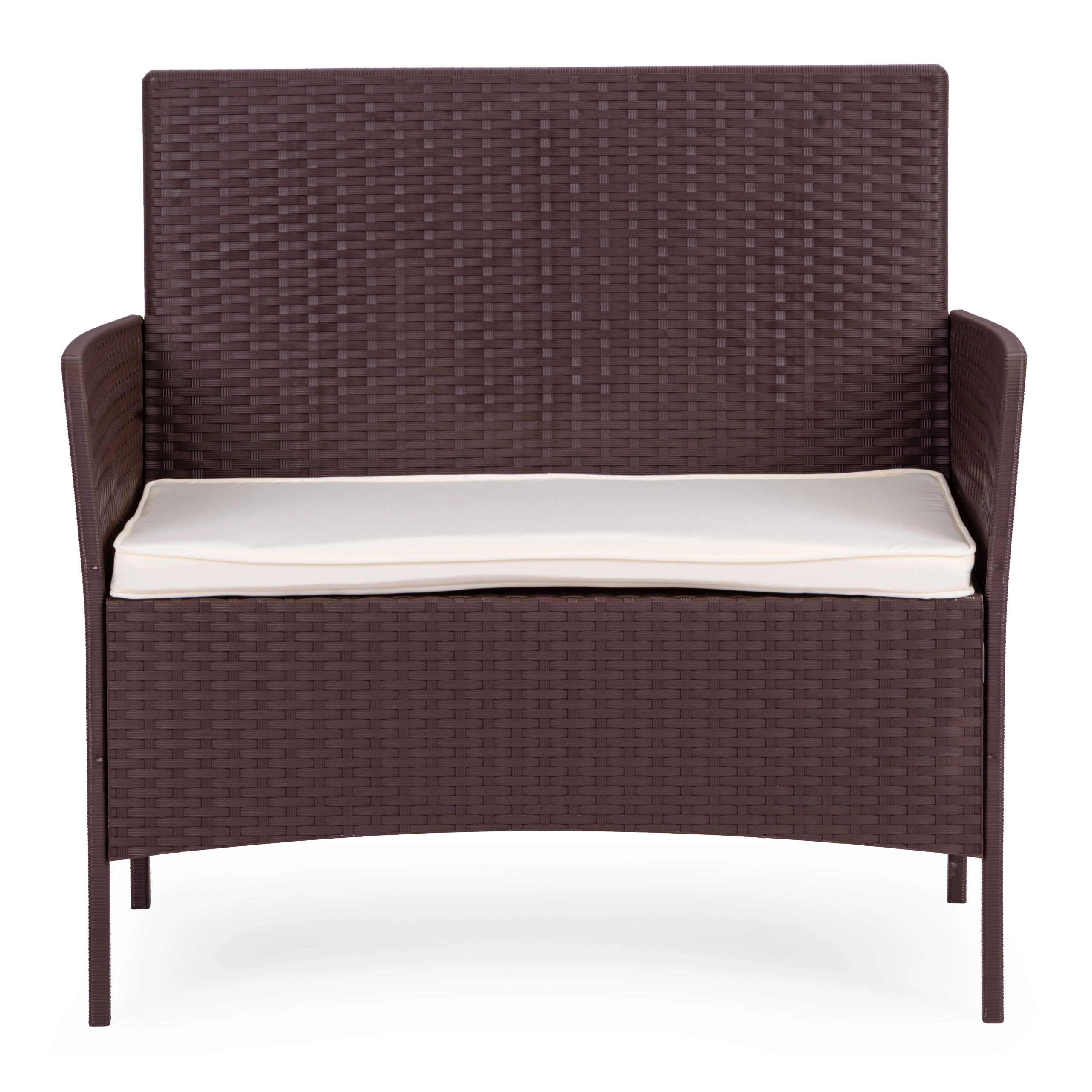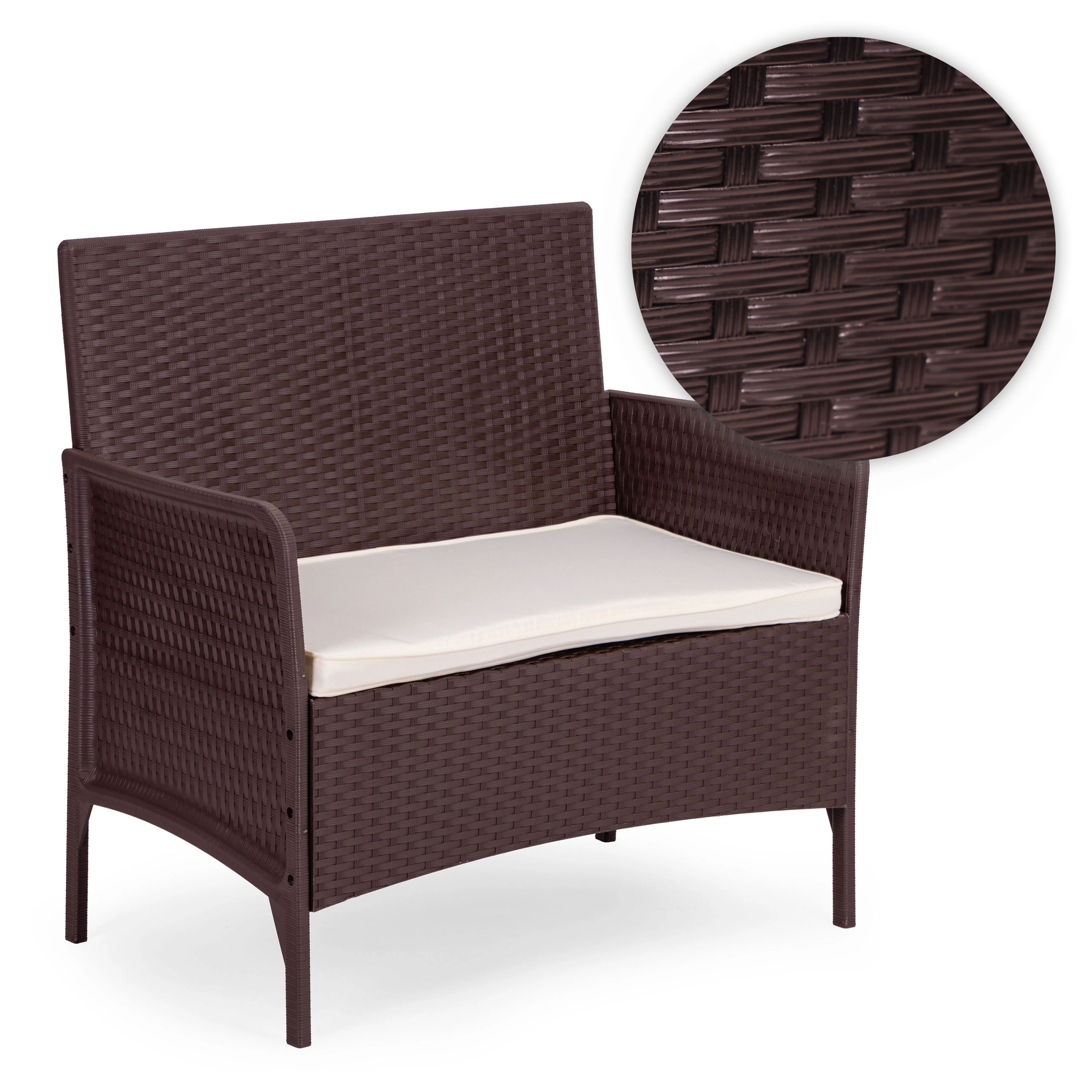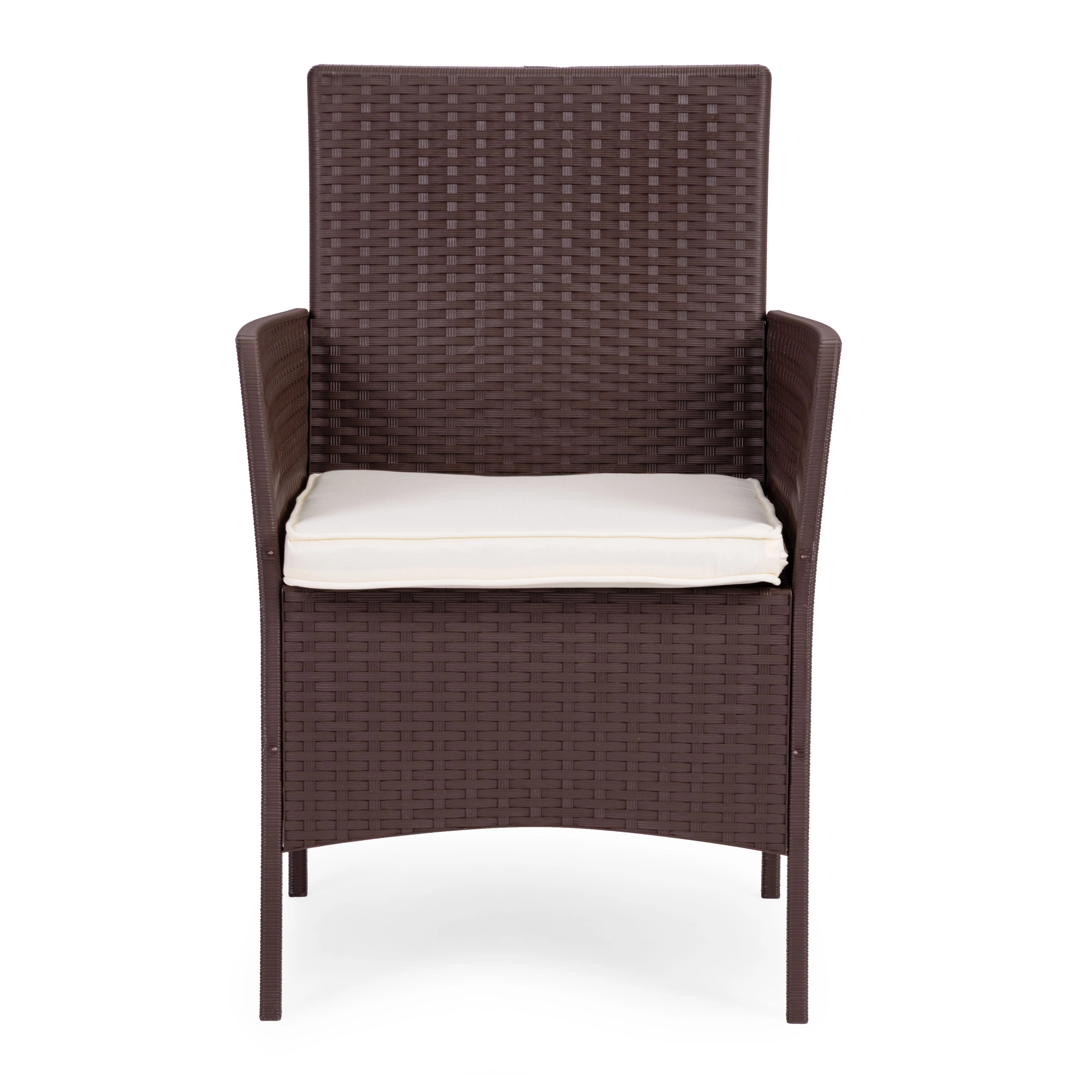 Vytvorte si príjemné miesto na posedenie a relax. Táto 4-dielna záhradná súprava v hnedej farbe kombinuje vzhľad technoratanu s praktickými výhodami odolného plastu. Je ideálna na každodenné používanie v záhrade aj na terase a vďaka tvrdenému sklu na stolíku získate stabilnú a bezpečnú odkladaciu plochu na kávu i občerstvenie.