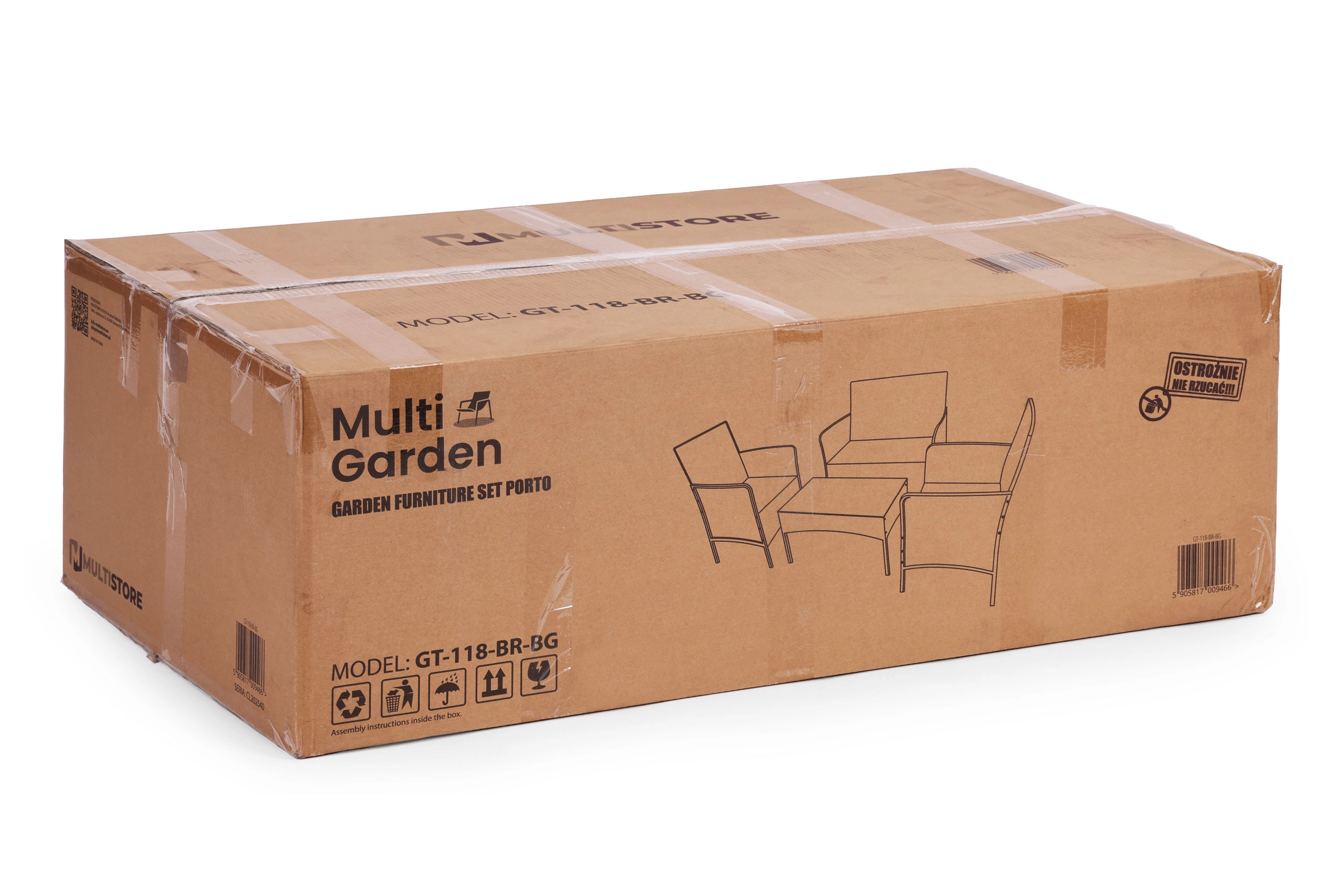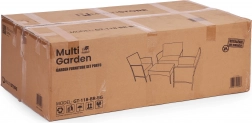 Elegantná záhradná súprava pre 4 osoby od MULTIGARDEN prináša štýl a pohodlie na terasu, balkón aj do pergoly. Obsahuje 2 kreslá, lavicu a konferenčný stolík s tvrdeným sklom. Odolná plastová konštrukcia s efektom ratanu skvele znáša počasie a ľahko sa udržiava, zatiaľ čo vankúše z polyesteru 160 g/m² zabezpečujú pohodlné sedenie. Nosnosť až 150 kg na kreslo a 250 kg na lavicu.