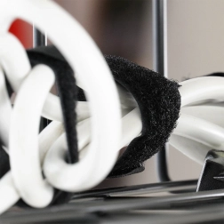 Jednoduchá inštalácia s priloženým príslušenstvom: skrutky s podložkami, pásiky na suchý zips a samolepiace klipy na vedenie káblov po doske. Rýchlo tak vytvoríte prehľadné a bezpečné pracovisko bez neporiadku pod nohami.