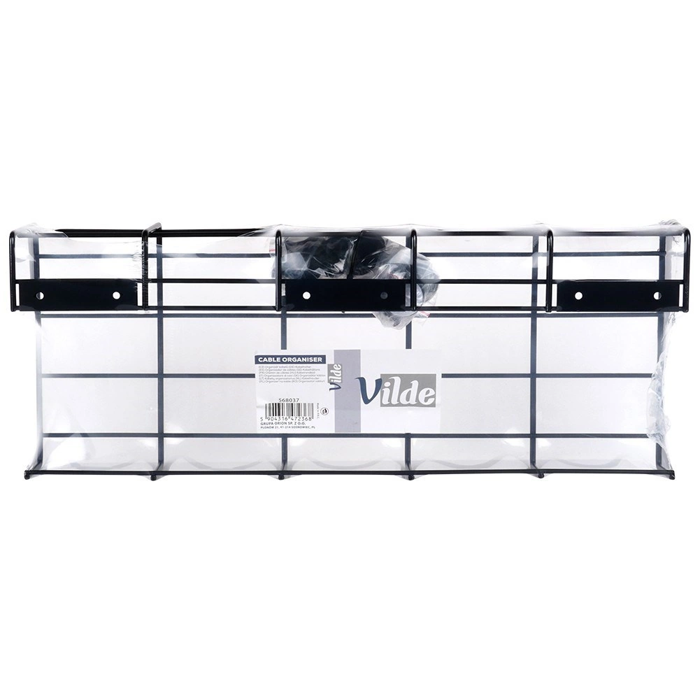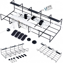 Vďaka univerzálnym rozmerom 43 × 17 × 10 cm sa ľahko zmestí pod väčšinu stolov a políc. Práškovolakovaný kov v čiernej farbe je odolný proti poškriabaniu a skvelo ladí s modernými interiérmi. Kôš je ideálny na uloženie predlžovacích líšt, napájacích zdrojov aj prebytočných káblov bez ich krútenia a zamotávania.