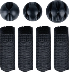 Súčasťou sú skrutky s podložkami, pásiky na suchý zips a samolepiace klipy – pre pevné uchytenie koša aj elegantné vedenie káblov.