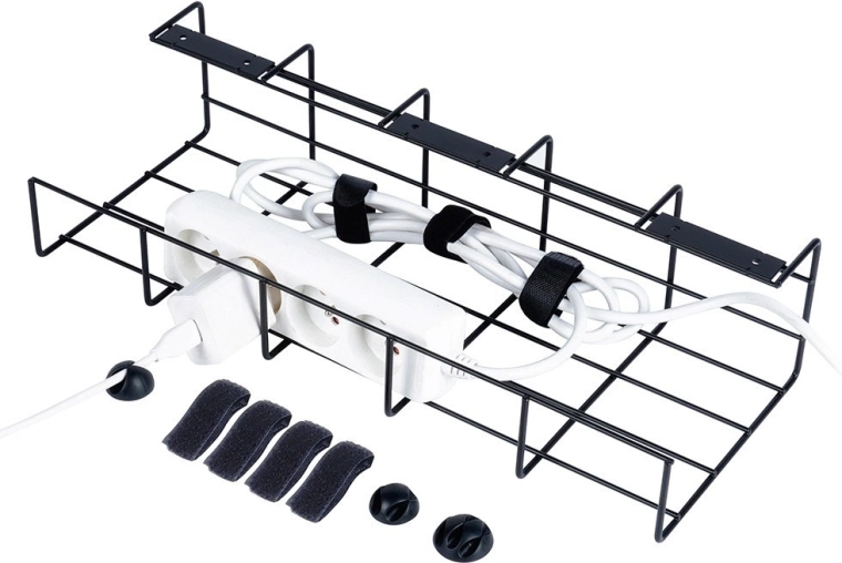 Podstolový kôš na káble udrží rozvody mimo dohľadu, mimo podlahy a mimo dosahu detí či domácich miláčikov. Otvorená drôtená konštrukcia zabezpečuje voľné prúdenie vzduchu pre adaptéry a rýchly prístup pri pridávaní alebo výmene zariadení.