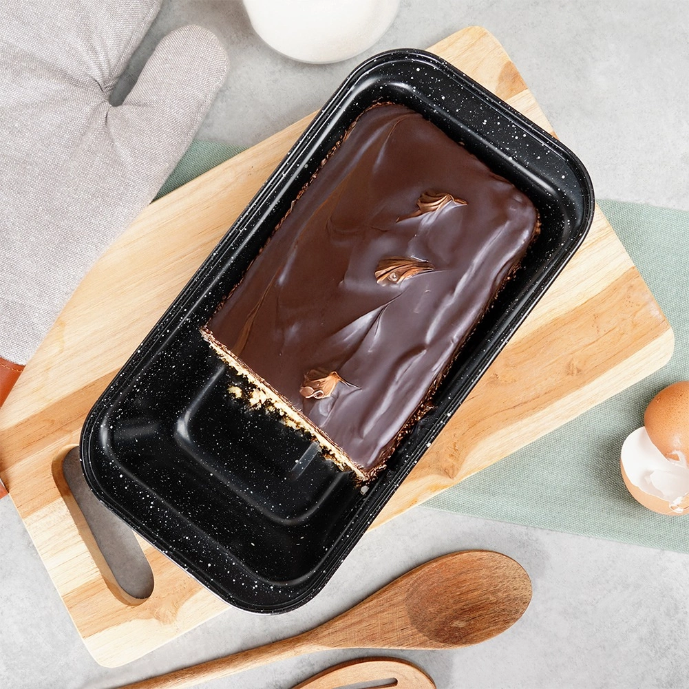 Táto obdĺžniková forma z kvalitnej uhlíkovej ocele s granitovou nepriľnavou vrstvou je ideálna na domáce pečenie chleba, sušienok, báboviek aj paštét. Materiál zabezpečuje rýchle a rovnomerné prehriatie, takže vaše výtvory budú vždy krásne a rovnomerne prepečené.