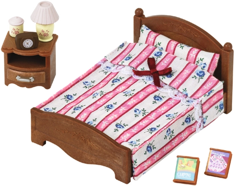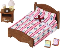 Vytvorte si doma útulnú izbičku pre figúrky SYLVANIAN FAMILIES vďaka premyslenému setu s dvojlôžkom. Rustikálny dizajn s imitáciou tmavého teakového dreva pôsobí autenticky a krásne zapadne do každého domčeka. Kvalitné spracovanie a jemné detaily, ako je čipková prikrývka s mašľou a kvetovaný vankúš, dodávajú postieľke čaro, ktoré deti milujú.