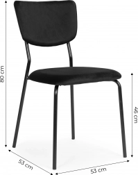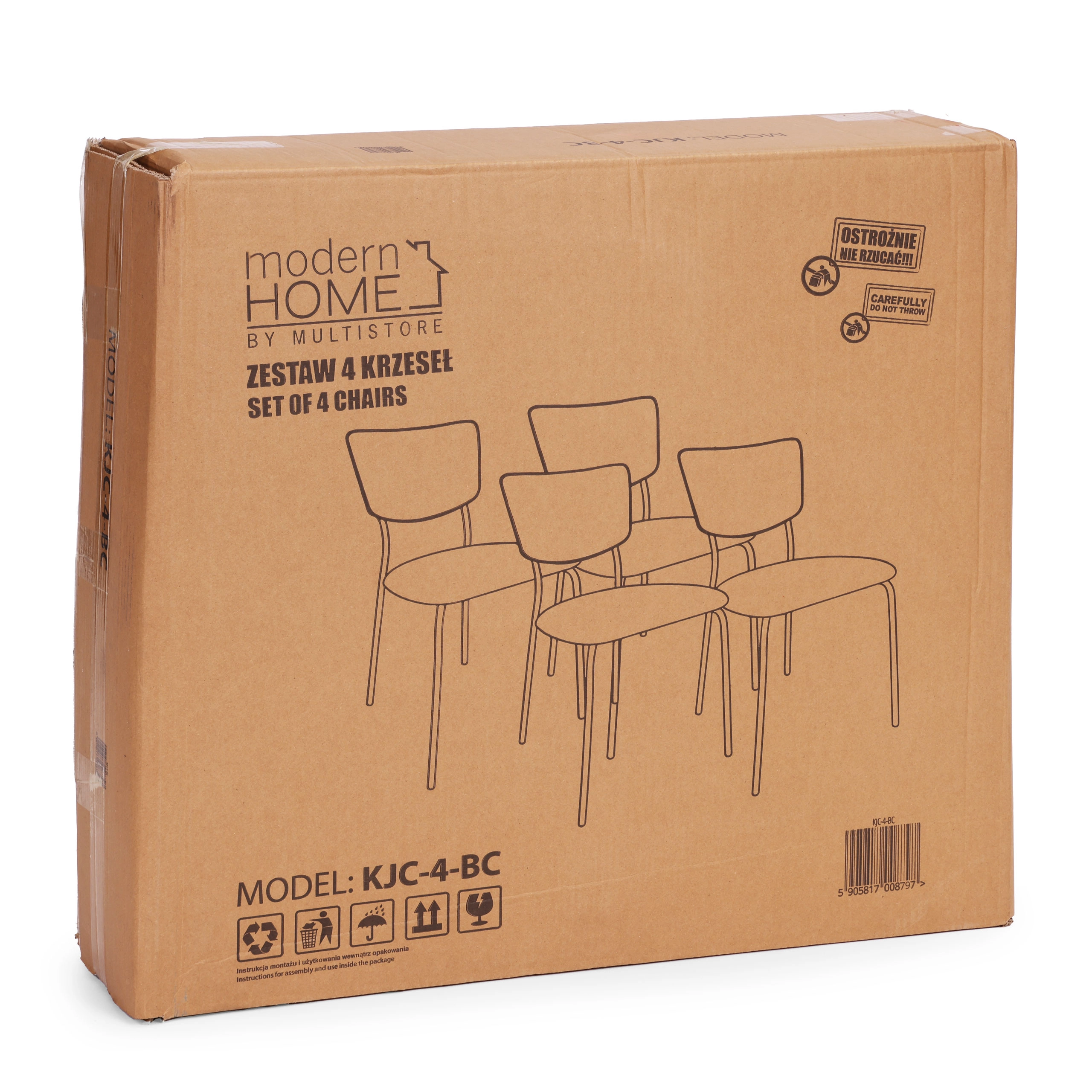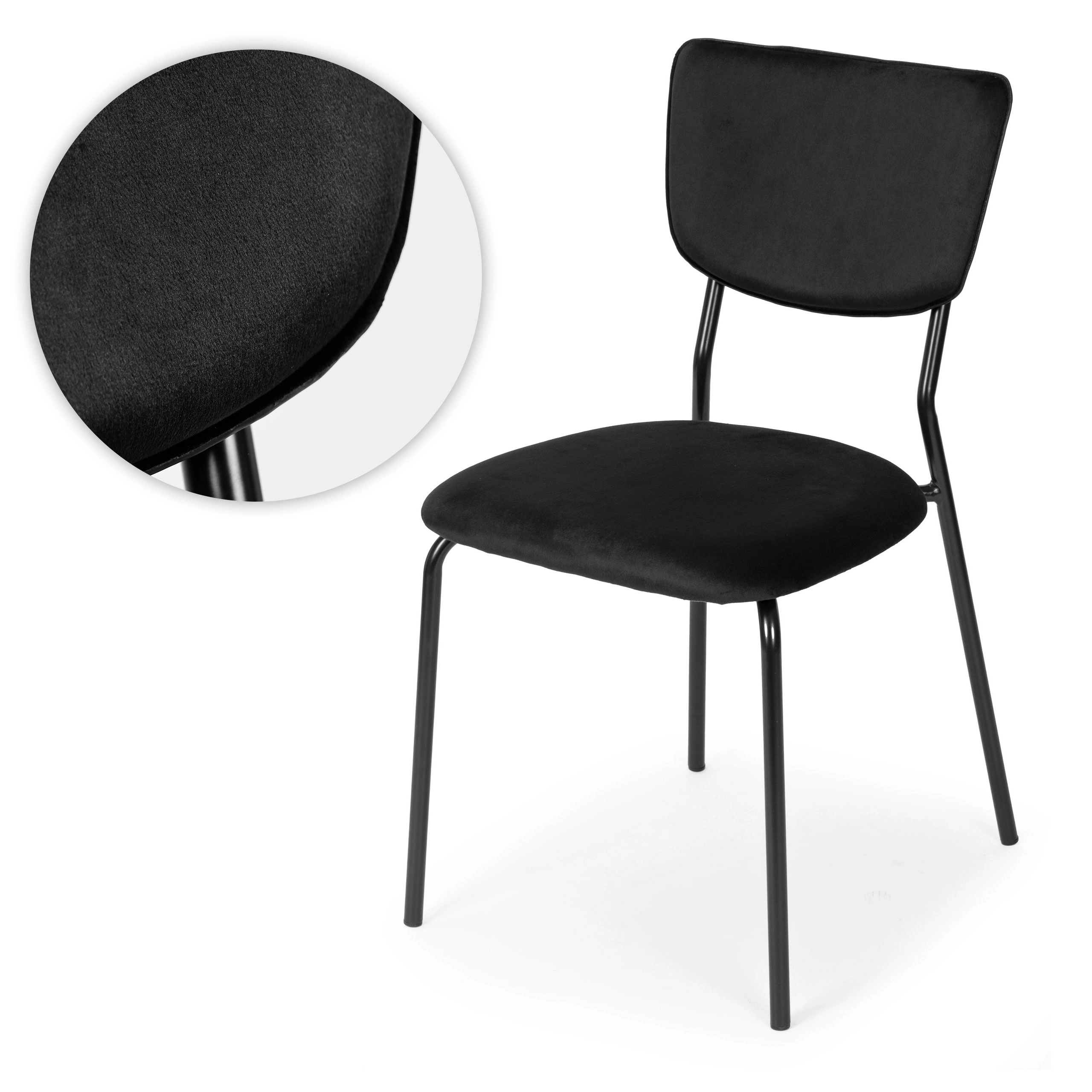 Elegantná súprava 4 stoličiek ModernHome vnesie do jedálne aj obývačky moderný štýl a pohodlie. Odolná kovová konštrukcia, príjemné zamatové čalúnenie, mäkké penové polstrovanie a ergonomicky tvarované operadlo zaistia komfort každý deň. Stoličky sú stohovateľné, majú ochranné koncovky nôh a unesú až 120 kg.