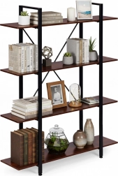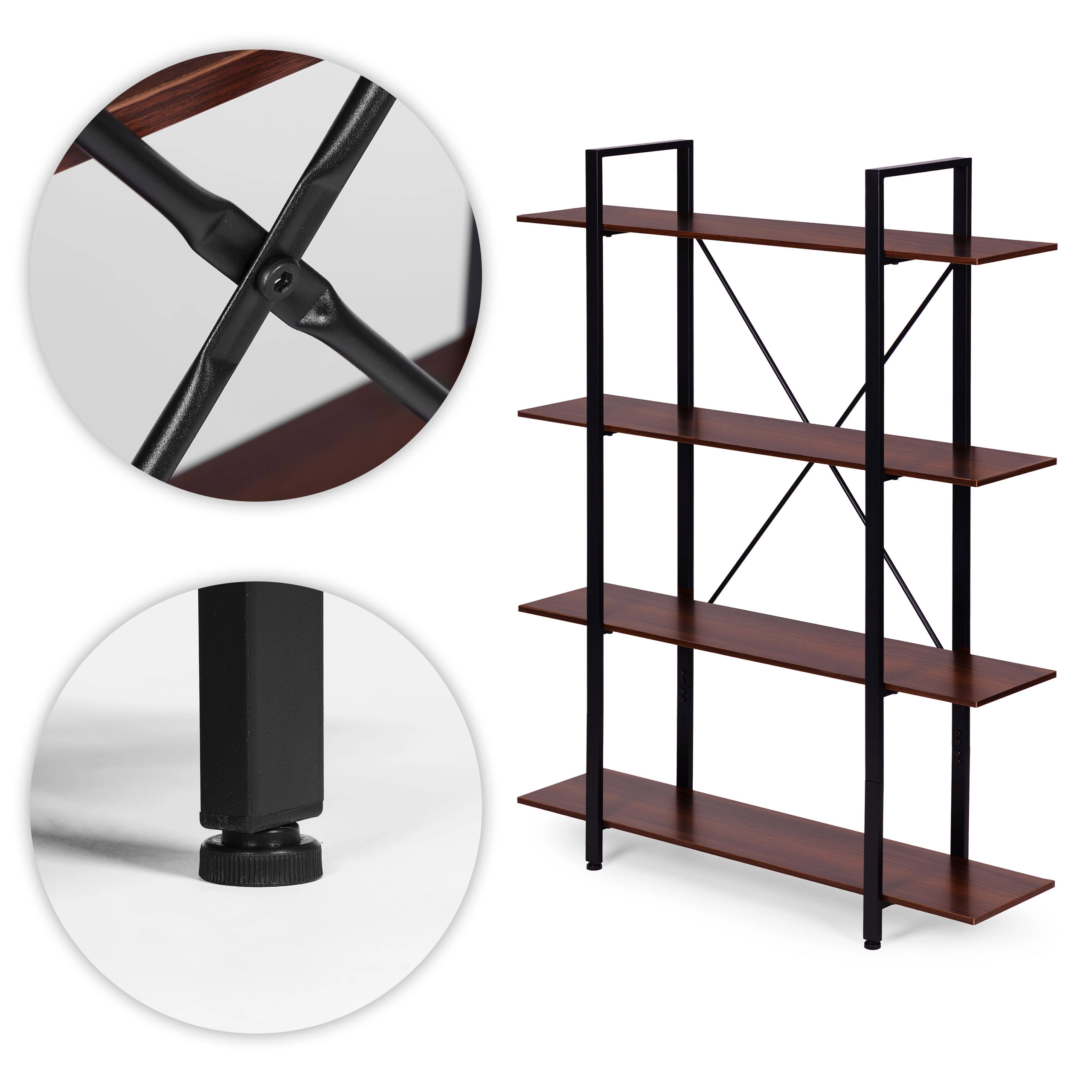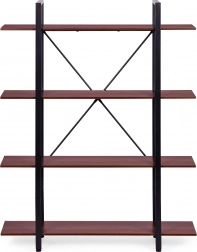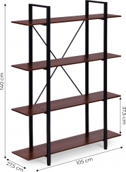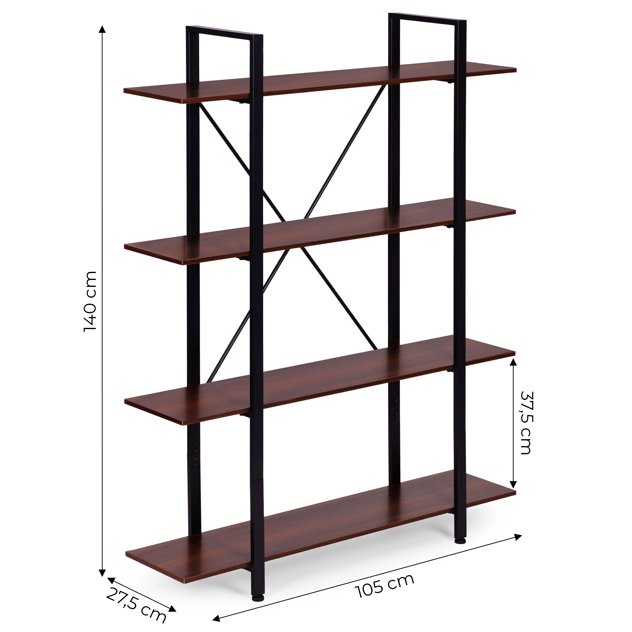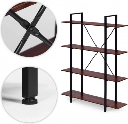 Štýlová loftová polica MODERNHOME prináša moderný industriálny dizajn, 4 praktické police z MDF a pevný kovový rám. Vďaka krížovej výstuhe je stabilná, má nastaviteľné ochranné nožičky na dorovnanie nerovnej podlahy a unesie až 10 kg na policu – ideálna na knihy, dekorácie aj rastliny.
