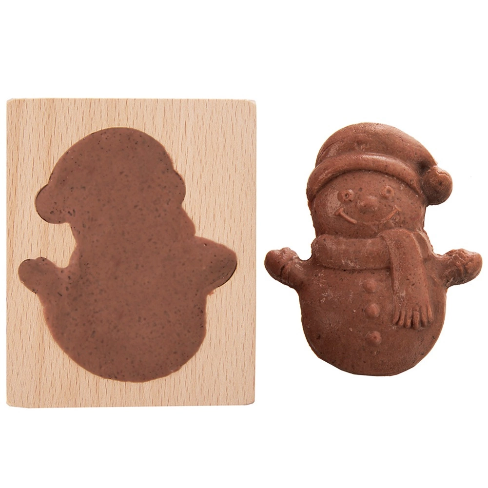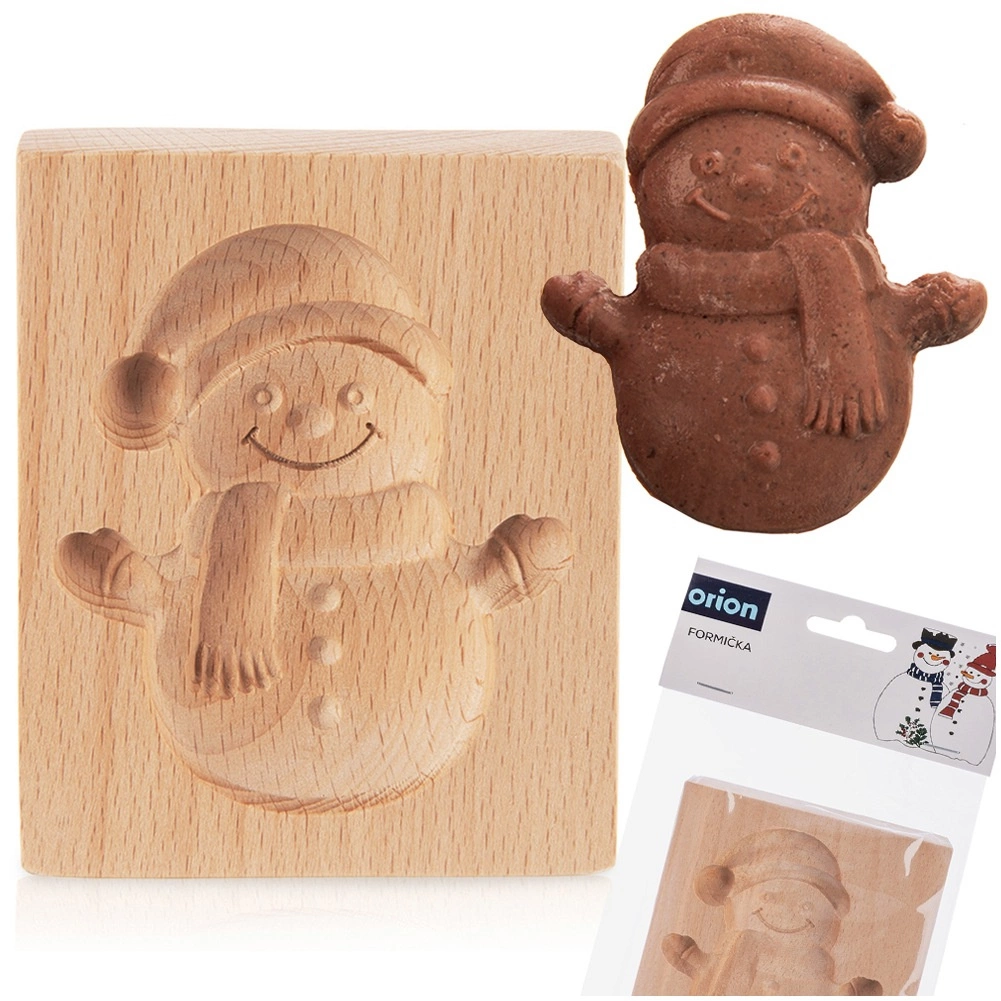Táto drevená formička v podobe usmiateho snehuliaka je ideálna na sviatočné pečenie aj tvorenie s deťmi. Reliéfny vyrezávaný motív vytvára krásne plastický vzor, ktorý na cukrovinkách, perníčkoch či čokoláde vynikne. Vonkajšie rozmery formy sú 11 × 9,5 × 2 cm, výsledný motív snehuliaka má približne 8,7 × 7,5 cm.