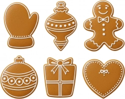 Táto sada obsahuje šesť obľúbených motívov – rukavicu, podlhovastú ozdobu, perníčkovú postavičku, guľatú guľu, darček a srdce. Vykrajovačky z kvalitnej nehrdzavejúcej ocele sú pevné, odolné a vytvárajú presné línie bez strapkania cesta. Vďaka hladkým rezným hranám ľahko vykrojíte rovnomerné tvary pre perfektne vyzerajúce cukrovinky.