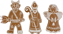 Anjel, čert a svätý Mikuláš pre hravé a tematické pečenie počas adventu.