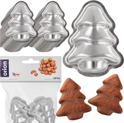 Praktická sada 20 kovových formičiek v tvare vianočného stromčeka na jednoduchú prípravu pečiva, perníkov, praliniek aj dekorácií. Formičky z oceľového plechu s povrchovou úpravou výborne vedú teplo, zabezpečujú rovnomerné pečenie a sú odolné a trvanlivé. Vďaka kompaktným rozmerom sa ľahko čistia a skladujú.