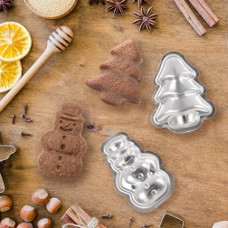 S touto sadou formičiek hravo vykúzlite sviatočné pečivo v tvare stromčeka – od krehkých sušienok cez perníky až po čokoládové pralinky. Kvalitný materiál sa postará o rýchly prenos tepla a krásne prepečené cesto bez pripálenia. Formičky sa hodia aj na trojrozmerné pečivo, ktoré možno zlepovať krémom do efektných uzavretých kúskov.