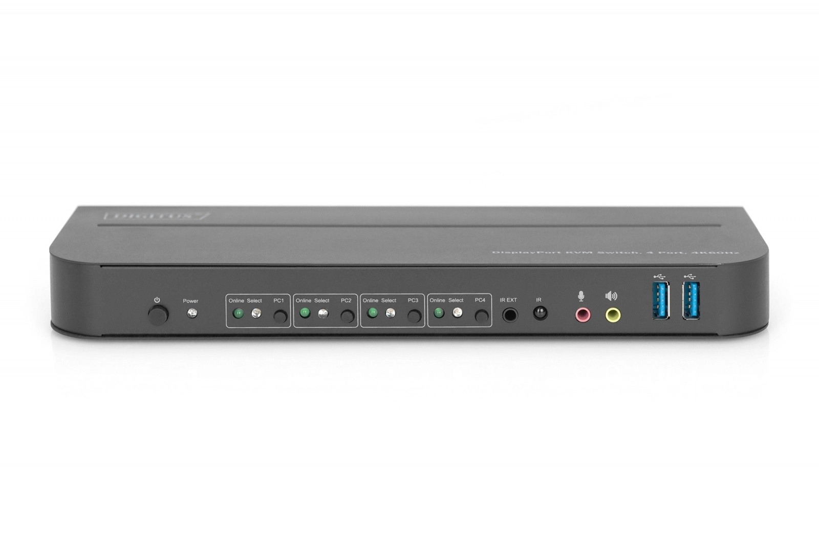 Dva predné porty USB 3.0 na rýchle pripojenie periférií a prepínateľný audio vstup/výstup pre mikrofón a slúchadlá na všetkých pripojených PC.