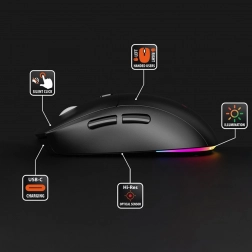 Vďaka tichým hlavným tlačidlám nerušíte okolie ani neskoro v noci. Optický senzor s rýchlou voľbou DPI 1200/2400/3200 pružne prepne medzi jemnou grafikou a rýchlymi reakciami v hrách. RGB efekt Rainbow dodá vášmu setu štýl.