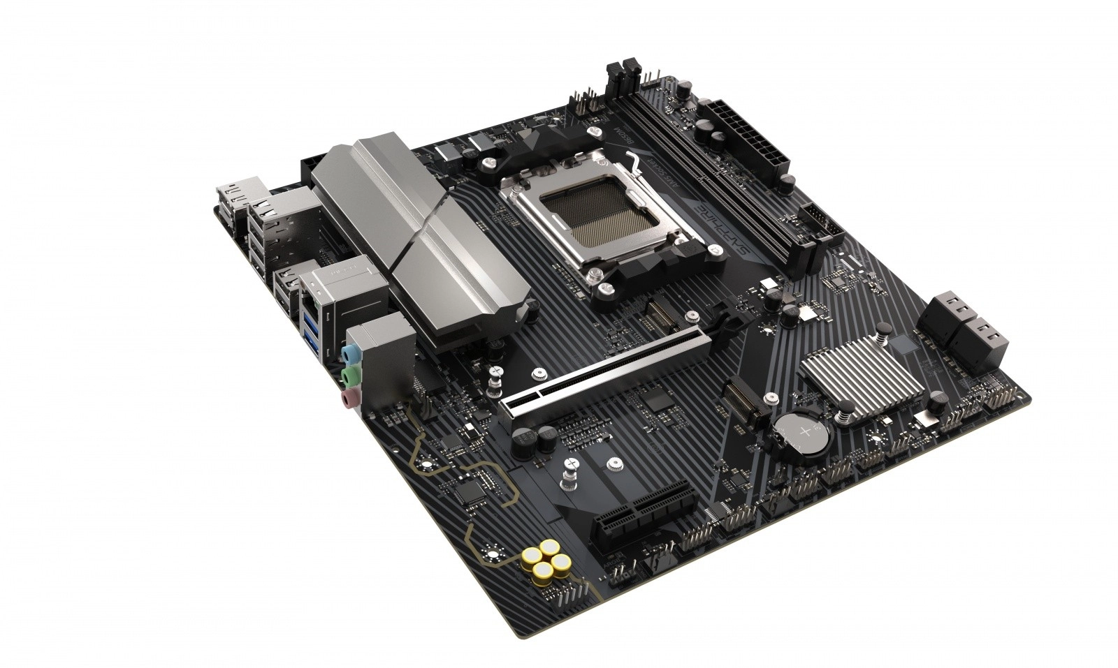 Kompaktná mATX základná doska Sapphire B650M‑E pre procesory AMD Ryzen so socketom AM5 ponúka modernú výbavu pre herné aj výkonné zostavy. Prináša PCIe 5.0 pre M.2 SSD, grafický slot PCIe 4.0 x16, rýchlu DDR5 (Dual Channel, až 7600 MHz OC) a stabilné napájanie vďaka 6+2+1 fázam VRM s chladičmi. Nechýba efektívne chladenie VRM, M.2 a čipsetu a prehľadné nastavenie v Sapphire CORE BIOS.