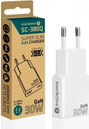 Ultratenká sieťová nabíjačka everActive s technológiou GaN ponúka výkon 30 W, podporu Power Delivery a Quick Charge 3.0. Vďaka dvojici portov USB‑C + USB‑A rýchlo a bezpečne nabije telefón, tablet aj drobnú elektroniku v kompaktnom, cestovnom vyhotovení.