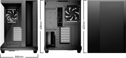 Napriek kompaktnému pôdorysu pojme skriňa radiátor až 360 mm, základné dosky ATX a grafické karty do 400 mm. Inteligentný držiak diskov ponúka zároveň miesta pre 2× HDD a 2× SSD bez obmedzenia priestoru za trayom pre vedenie káblov. Dve možné pozície zdroja umožnia využiť dosky so zadnými konektormi (Asus BTF, MSI Project Zero, Gigabyte Project Stealth) a pritom neprísť o montážne pozície pre úložiská.