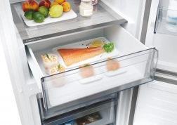 Vďaka oddeleným priehradkám pre čerstvé potraviny a trom zásuvkám v mrazničke máte všetko po ruke a rýchlo nájdete, čo potrebujete. Tichá prevádzka a ľahko čistiteľné materiály zaisťujú bezstarostné používanie v každodennej prevádzke domácnosti.