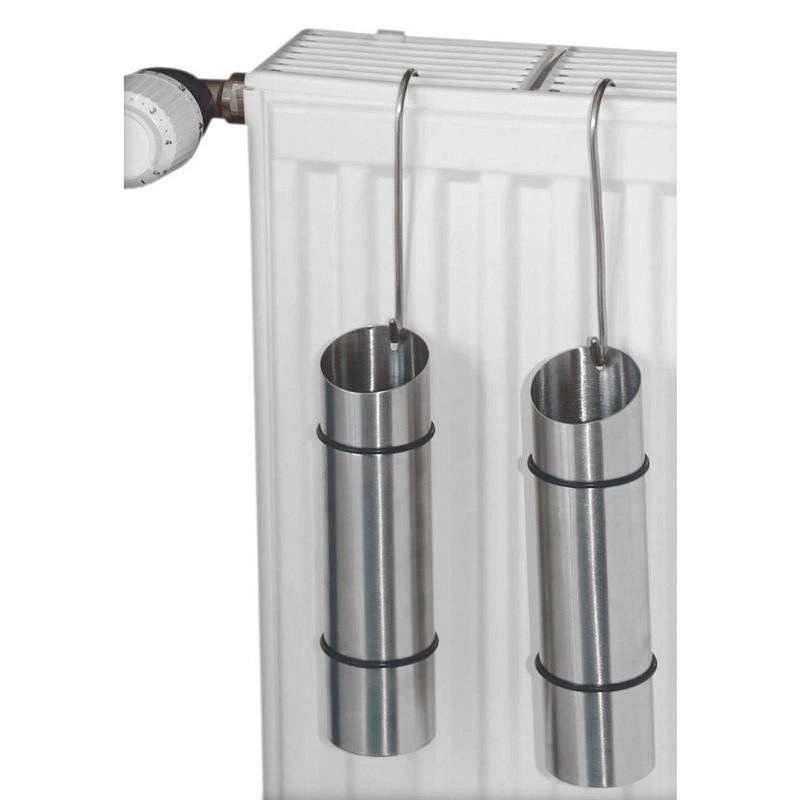 Praktická sada dvoch oceľových zvlhčovačov na radiátor s objemom 300 ml zabezpečí počas vykurovacej sezóny prirodzené zvlhčenie vzduchu. Stačí ich naplniť vodou, zavesiť na radiátor a užívať si pohodlné a tiché zvlhčovanie bez elektriny. Nerezová oceľ a jednoduchý dizajn sa hodia do každého interiéru.