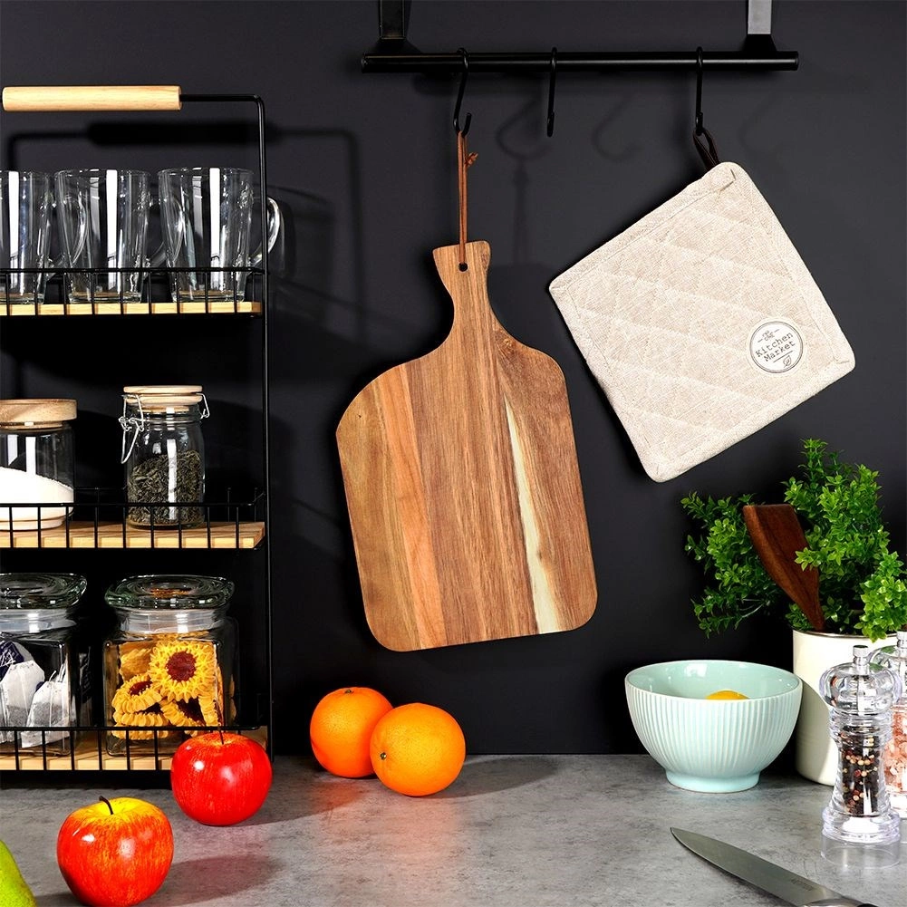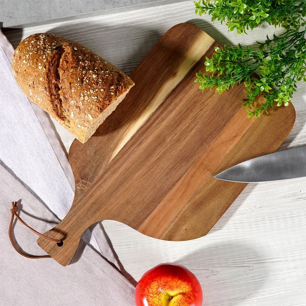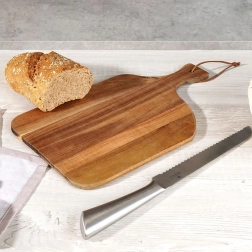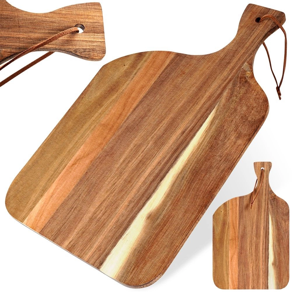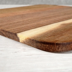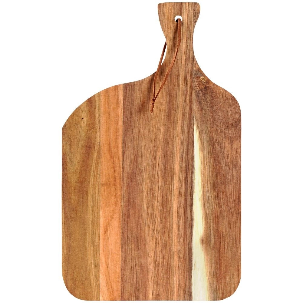 Univerzálna doska z kvalitného akáciového dreva je praktickým pomocníkom do každej kuchyne. Vyniká krásnou kresbou dreva, pohodlným úchopom a otvorom s koženým pútkom na jednoduché zavesenie. Skvele poslúži na krájanie mäsa, zeleniny a ovocia aj servírovanie syrov a predjedál.