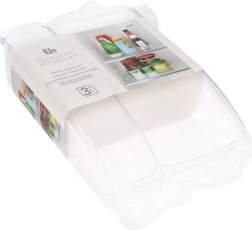 Sada 3 praktických boxov do chladničky vám pomôže udržať potraviny starostlivo roztriedené a dlhšie čerstvé. Priehľadné prevedenie zabezpečuje okamžitý prehľad o obsahu a otvorená predná strana umožňuje rýchle vybratie fliaš, jogurtov či zeleniny. Organizéry sú ľahké, odolné a jednoducho sa čistia, takže sa hodia do každej domácnosti.
