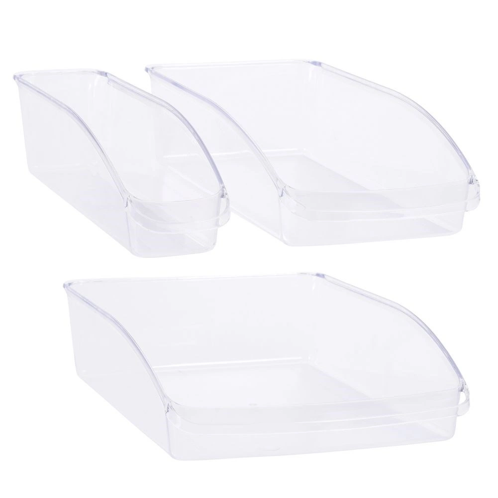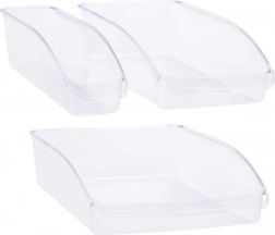 Udržujte svoju chladničku prehľadnú a hygienickú so sadou troch priehľadných organizérov. Vďaka otvorenej prednej strane a vysokým bočniciam je obsah vždy ľahko prístupný, čo pomáha šetriť miesto aj čas. Organizéry sú z odolného plastu, vhodné do umývačky a ideálne na triedenie nápojov, ovocia, zeleniny aj konzerv. Maximálny prehľad, ľahký prístup a čistota bez námahy na každej polici.