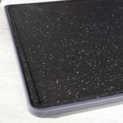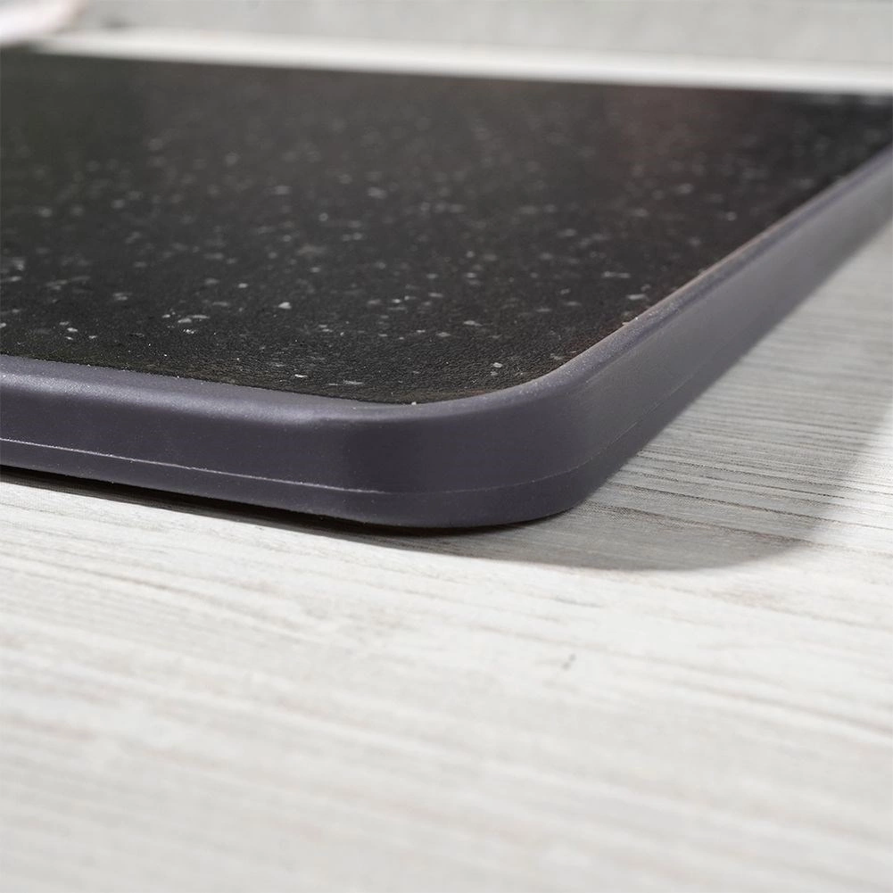 Praktická a štýlová doska z kvalitného plastu s povrchom imitujúcim čierny žulový kameň je ideálna na krájanie ovocia, zeleniny aj mäsa. Vďaka neporéznemu materiálu neabsorbuje pachy ani tekutiny a pomáha udržať kuchynskú linku čistú a bez škrabancov.