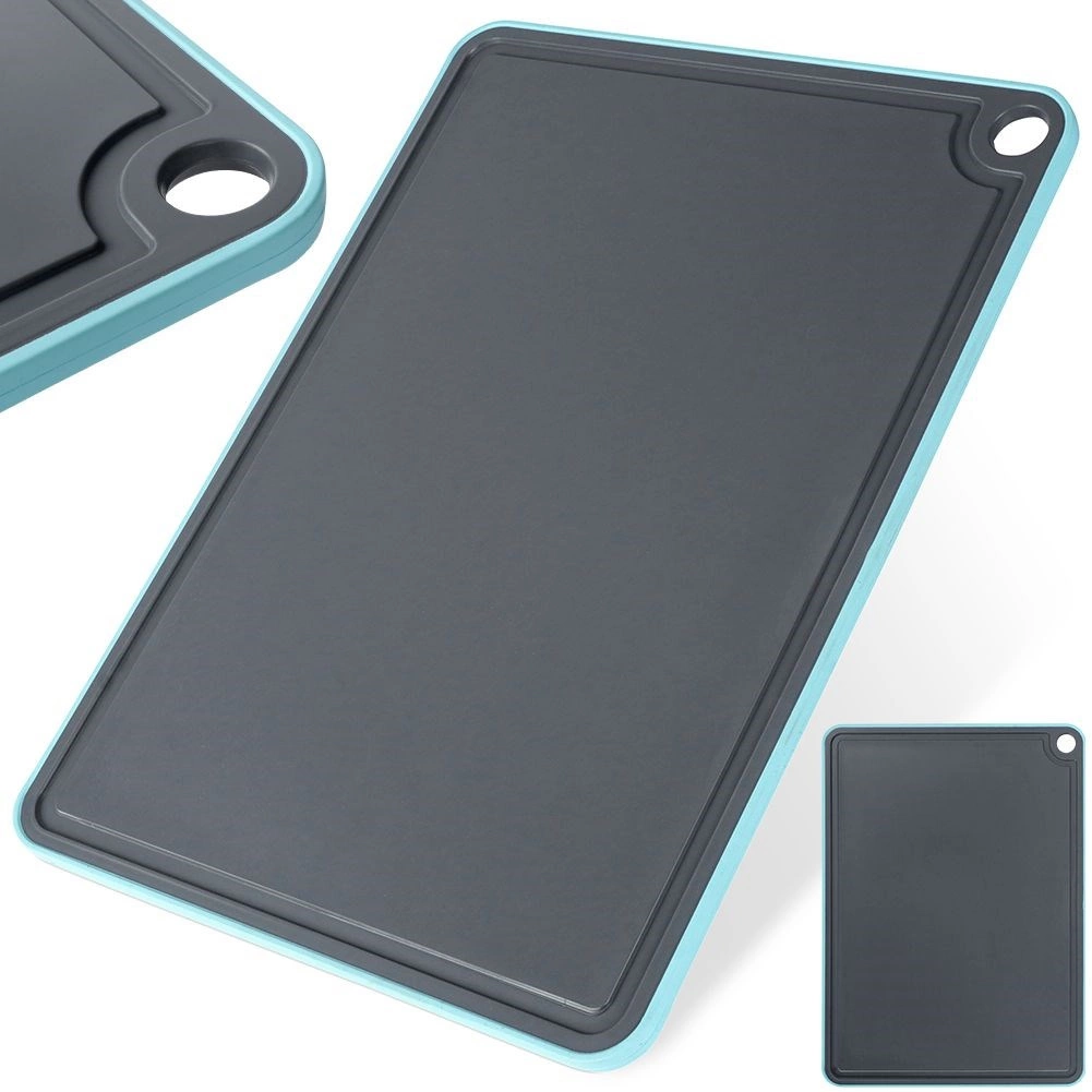 Univerzálna kuchynská doska so žliabkom na šťavu je ideálna na krájanie pečiva, zeleniny, ovocia aj mäsa. Odolný neporézny plast neabsorbuje vône ani farby a vďaka zvýšenému okraju s protišmykovou obrubou je krájanie stabilné a bezpečné.