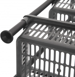 Plastová konštrukcia odolná voči vlhkosti sa ľahko čistí a košíky možno pre úsporu miesta zasunúť do seba pri uskladnení.