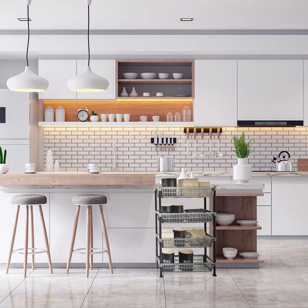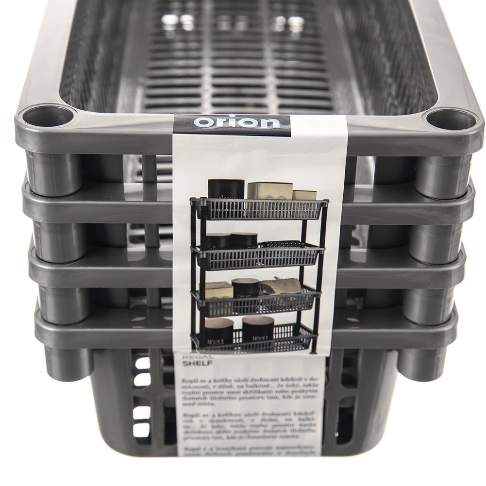 Praktický a úzky 4-poschodový regál z odolného plastu ponúka maximálny úložný priestor aj v malej kúpeľni či kuchyni. Štyri vetrané košíky v sivej farbe a čierna konštrukcia zabezpečujú ľahkú údržbu, odolnosť voči vlhkosti a jednoduché zostavenie. Skvelý do kúpeľne, kuchyne, predsiene, na balkón aj do dielne.