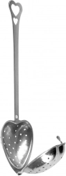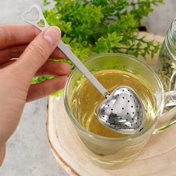 Elegantné nerezové sitko na sypaný čaj a bylinky v tvare srdca s dlhou rukoväťou na bezpečné vybratie zo šálky. Jemná perforácia spoľahlivo zachytí všetky lístky a drobné čiastočky, takže nápoj zostane čistý a plný arómy. Kvalitná nerezová oceľ zabezpečuje odolnosť, jednoduché čistenie a dlhú životnosť.