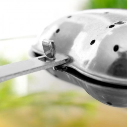 Sitko je vyrobené z nerezovej ocele v elegantnom striebornom prevedení, je odolné, hygienické a ľahko sa čistí. Praktické zavretie s pántom bezpečne drží sypaný čaj či bylinky vo vnútri. Hodí sa aj na lúhovanie bylín alebo na vloženie korenia pri varení polievok a vývarov.