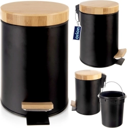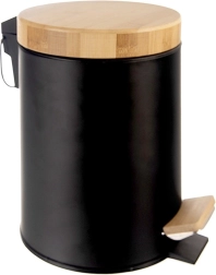 Kompaktný odpadkový kôš s objemom 3 l v elegantnej čiernej farbe s bambusovým vekom a pedálom je ideálny do kúpeľne, kancelárie či spálne. Vďaka pedálovému otváraniu bez použitia rúk je používanie maximálne hygienické, vyberateľná vnútorná nádoba uľahčuje vysypávanie a čistenie a matný kov s bambusovými akcentmi skvelo zapadne do moderného interiéru.