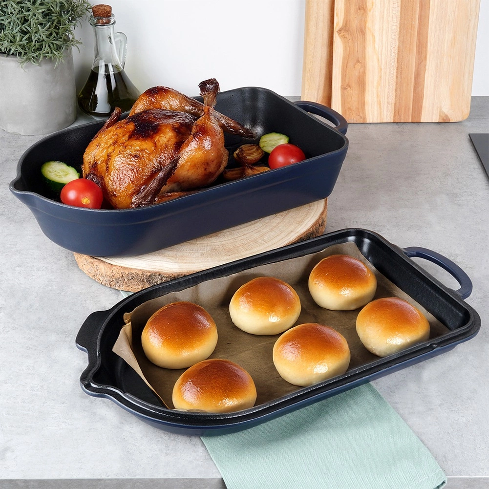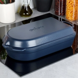 Univerzálny liatinový pekáč 2v1 s tesne priliehajúcim vekom, ktoré slúži aj ako samostatná misa na zapekanie. Ponúka rovnomerné rozvádzanie tepla, dlhú akumuláciu tepla a odolnú smaltovanú povrchovú úpravu pre ľahké čistenie. Vhodný do rúry aj na všetky typy sporákov vrátane indukcie až do 250 °C.