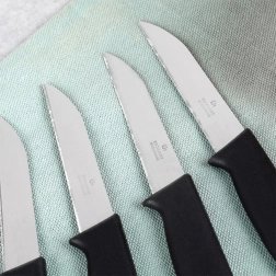 Každý nôž má celkovú dĺžku 16 cm a dĺžku čepele 7 cm, čo je ideálna kombinácia na lúpanie, čistenie a dekoratívne krájanie ovocia a zeleniny. Nože sú univerzálne – zvládnu aj porciovanie menších kúskov mäsa alebo potravín s tvrdšou šupkou. Po použití ich môžete jednoducho vložiť do umývačky riadu.