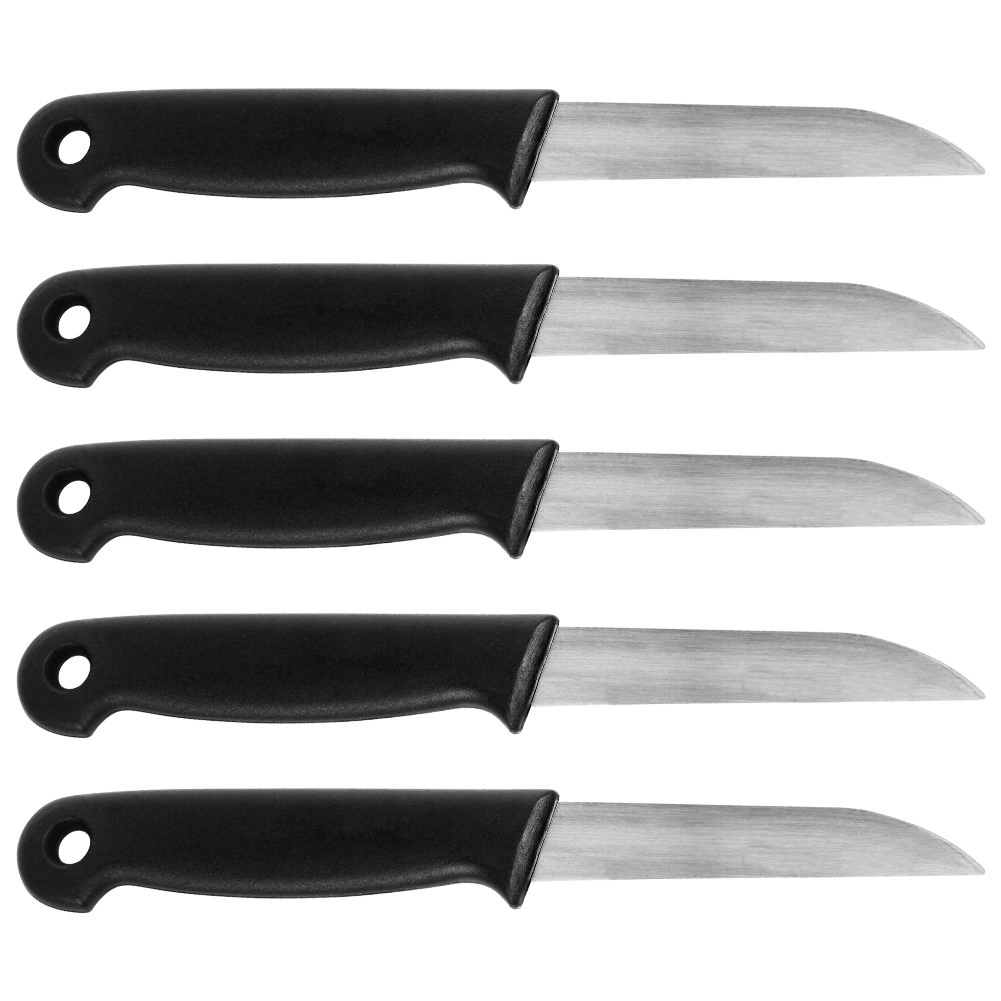 Sada 5 nožov na lúpanie je navrhnutá na presné a pohodlné krájanie menších surovín. Nehrdzavejúca oceľ zabezpečuje dlhú životnosť a spoľahlivú ostrosť, zatiaľ čo protišmyková ergonomická rukoväť poskytuje istý úchop aj pri rýchlom tempe práce.