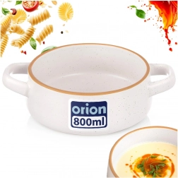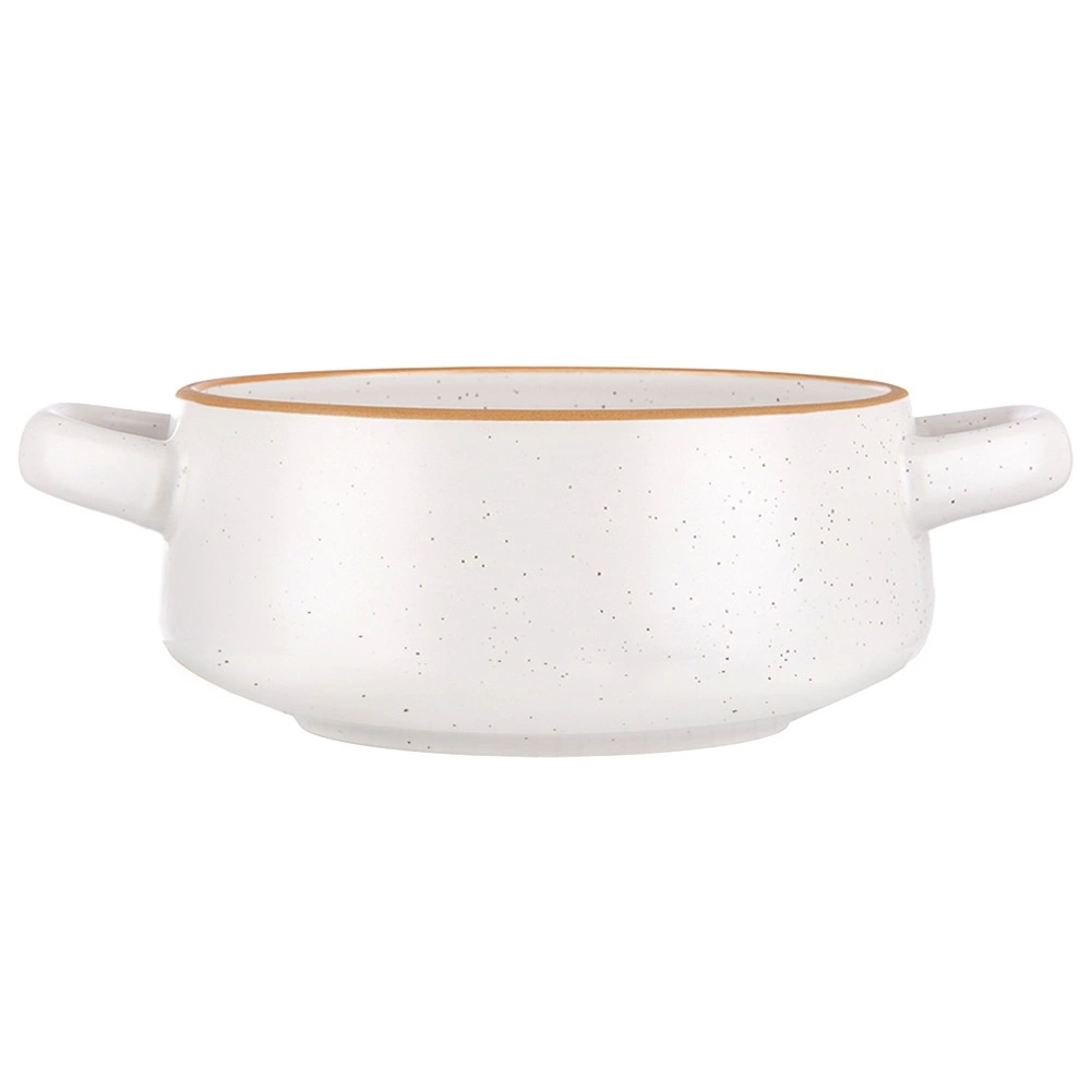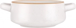Praktická keramická miska na polievku s objemom 800 ml s bočnými uškami na bezpečné prenášanie a servírovanie. V elegantnom bielom prevedení s hnedým lemom a jemným škvrnitým vzorom sa skvele hodí na polievky, vývary aj krémy, ale tiež na raňajkové cereálie, jogurt, ovocie či šaláty. Je vhodná do umývačky riadu aj mikrovlnnej rúry a vďaka pevnému keramickému vyhotoveniu sa ľahko udržiava.