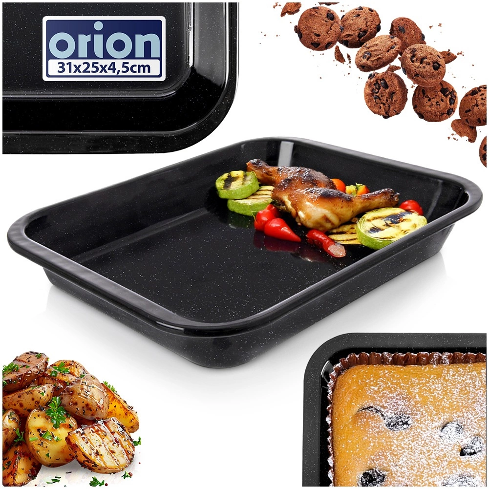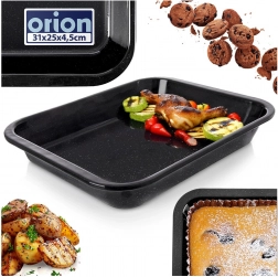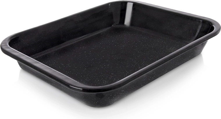 Praktický obdĺžnikový plech zo smaltovanej ocele s rozmermi 31 × 25 × 4,5 cm na každodenné pečenie. Ponúka rovnomerné rozloženie tepla, odolnosť proti poškriabaniu, ľahké čistenie a vysoký okraj pre šťavnaté pečienky, zapekané pokrmy aj sladké dezerty. Vhodný do plynových aj elektrických rúr a možno ho umývať v umývačke riadu.