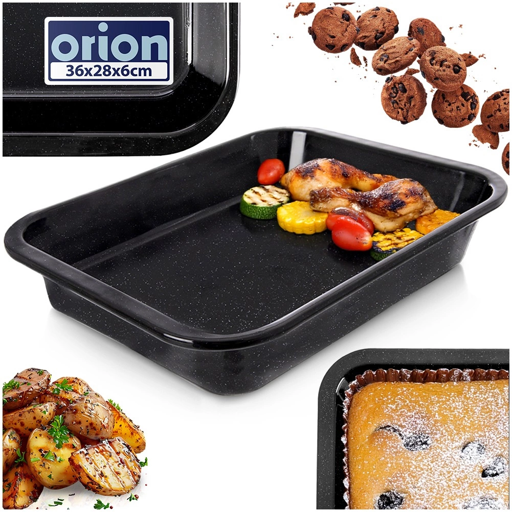Emailovaný plech na pečenie ORION je spoľahlivý pomocník do každej kuchyne. Vďaka robustnej ocele s kvalitným emailovým povrchom výborne rozvádza teplo, odoláva vysokým teplotám a zároveň sa ľahko udržiava. Vysoké steny bránia vytiekaniu štiav a uľahčujú manipuláciu.