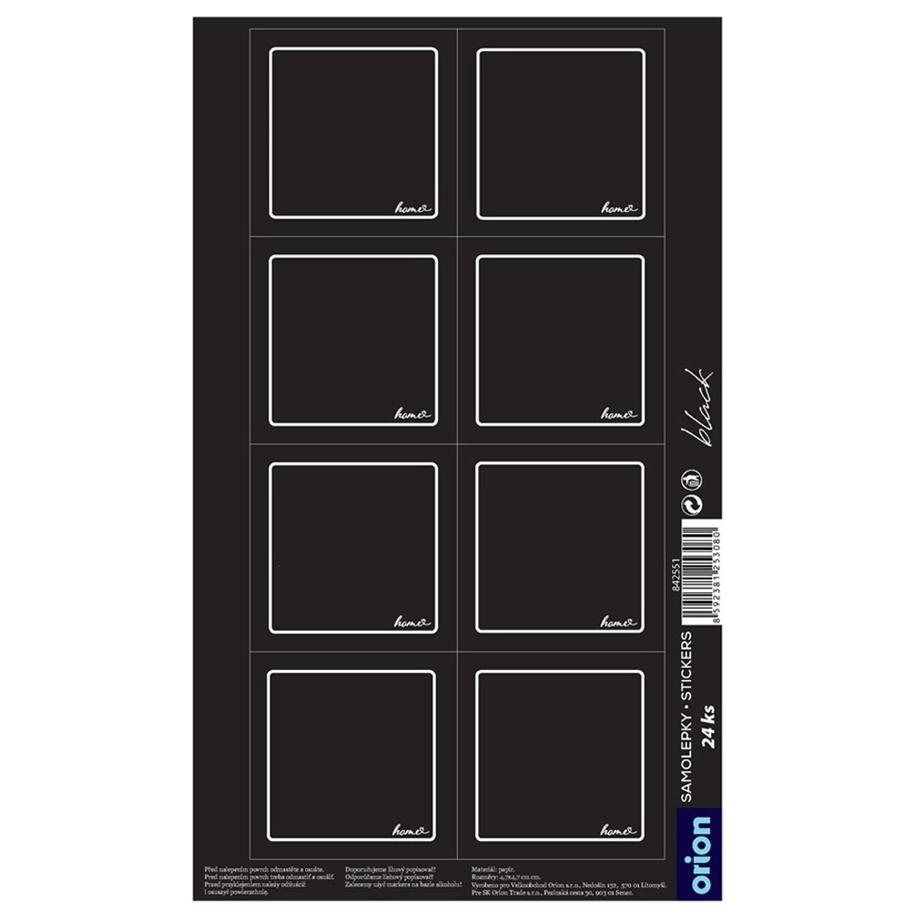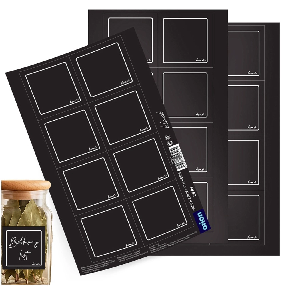 Praktická sada 24 samolepiacich štítkov v elegantnej čiernej farbe na prehľadné označenie pohárov, fliaš a dóz. Každý štítok má rozmer 4,7 × 4,7 cm, je z laminovaného papiera a vďaka samolepiacej vrstve nevyžaduje žiadne lepidlo. Miesto pre vlastný popis zaistí čitateľnosť a poriadok v špajzi aj kuchyni. Originálny produkt značky ORION.