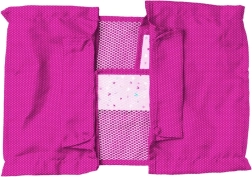 Ružová postieľka s kovovým rámom je ideálna na hranie doma i vonku. Je prenosná a ľahká.