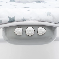 Integrovaný panel ponúka kombináciu jemných vibrácií, upokojujúcich melódií a svetelných efektov pre pohodové zaspávanie aj pokojný odpočinok bábätka.