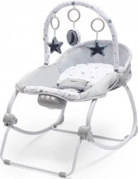 Vďaka kovovej konštrukcii je lehátko stabilné a odolné, mäkký poťah zo 100% polyesteru je príjemný na dotyk a ľahký na údržbu. Aretácia hojdacích líšt umožní rýchlo prepnúť na pevnú polohu napríklad počas kŕmenia alebo čítania. 3-bodový pás drží bábätko bezpečne na mieste, aby bolo hojdanie aj odpočinok vždy pohodové.